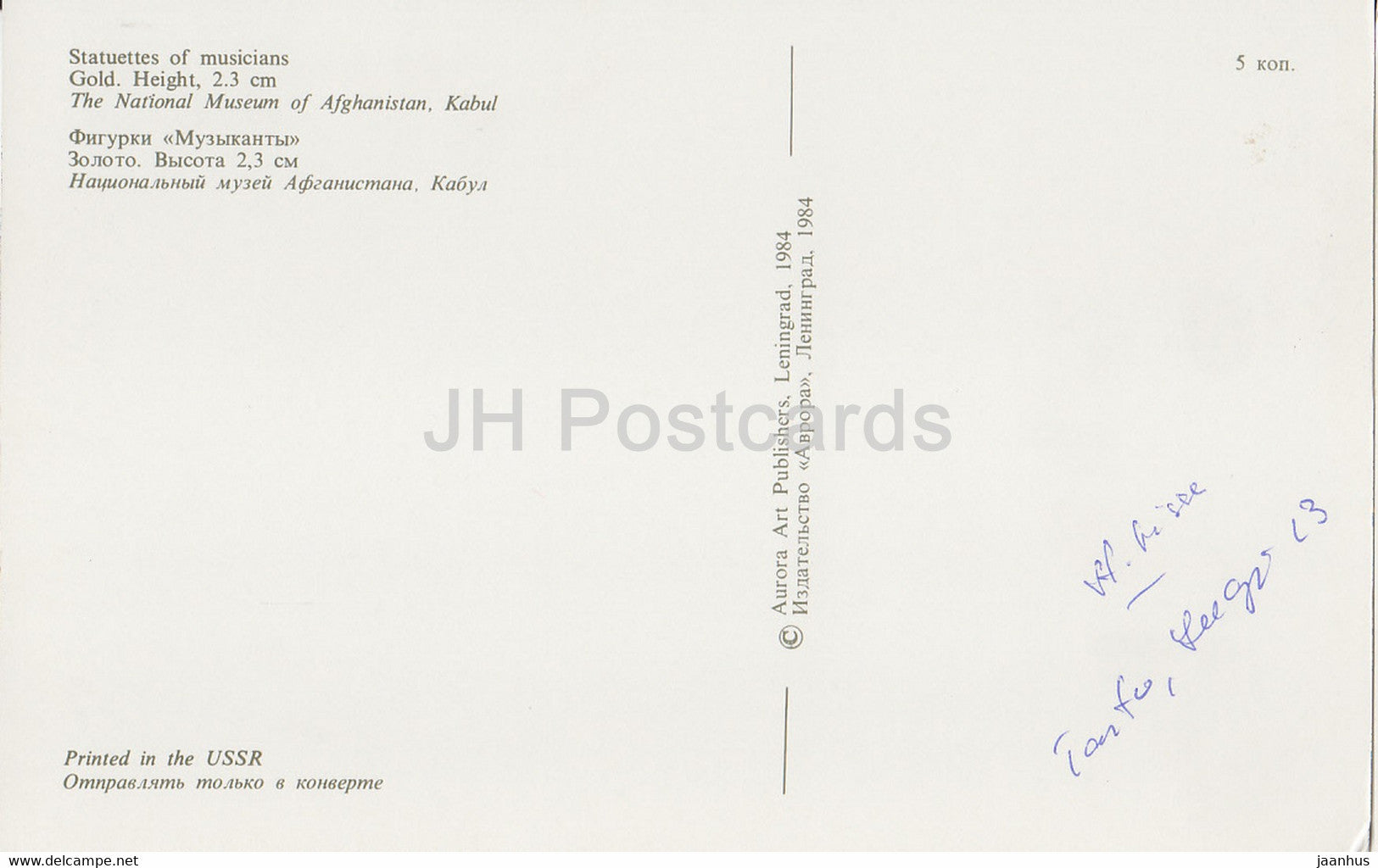 Statuettes de musiciens - Musée national d'Afghanistan - archéologie - Or de Bactriane - 1984 - URSS Russie - utilisé