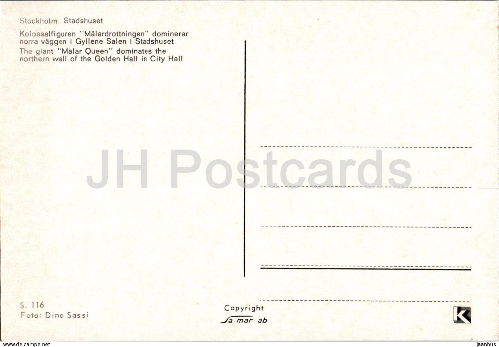 Stockholm - Stadshuset - Malardrottningen - Gyllene Salen - The Giant Malar Queen - Golden Hall - 116 - Suède - inutilisé
