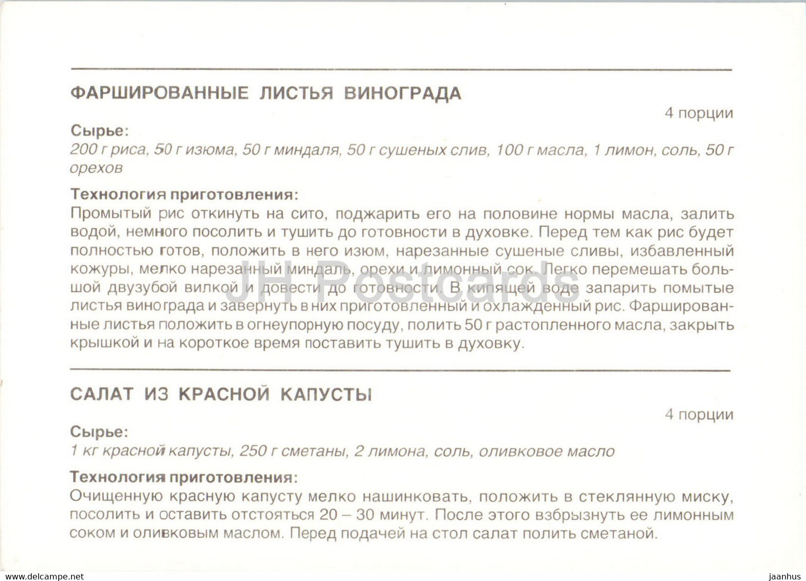 Feuilles de vigne farcies - Salade de chou rouge - Plats végétariens - recettes - 1989 - Russie URSS - inutilisé