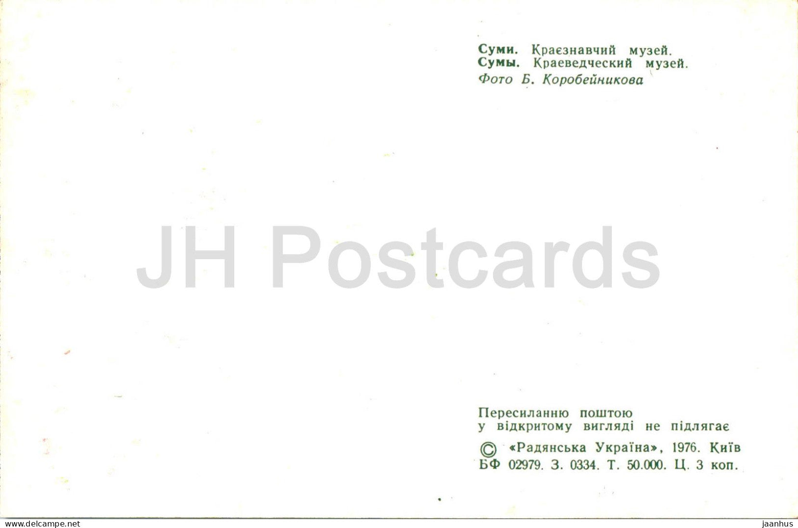 Soumy - Musée des traditions locales - 1976 - Ukraine URSS - inutilisé