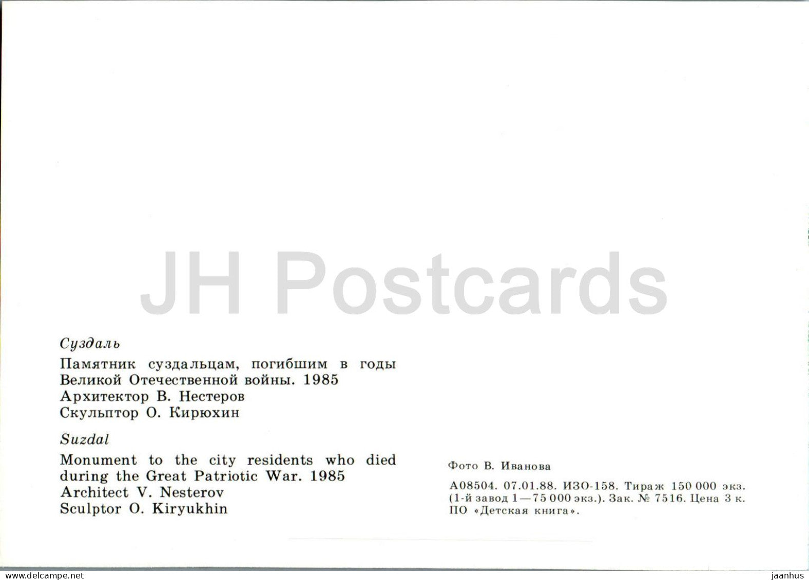 Souzdal - Monument aux citoyens morts pendant la Seconde Guerre mondiale - 1988 - Russie URSS - inutilisé
