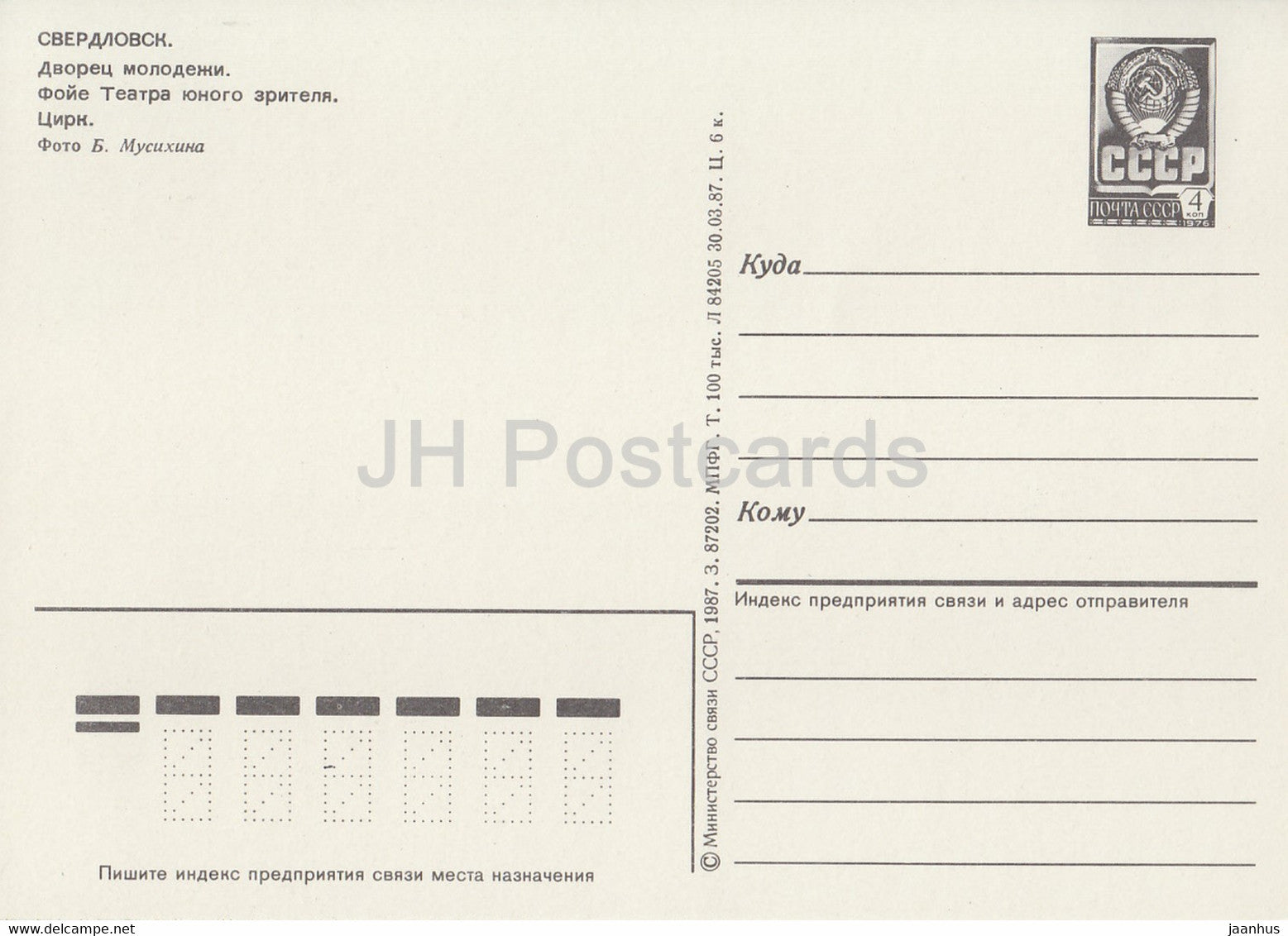 Sverdlovsk - Ekaterinbourg - Palais de la Jeunesse - Foyer du Théâtre du Jeune Spectateur - cirque - 1987 Russie URSS - inutilisé