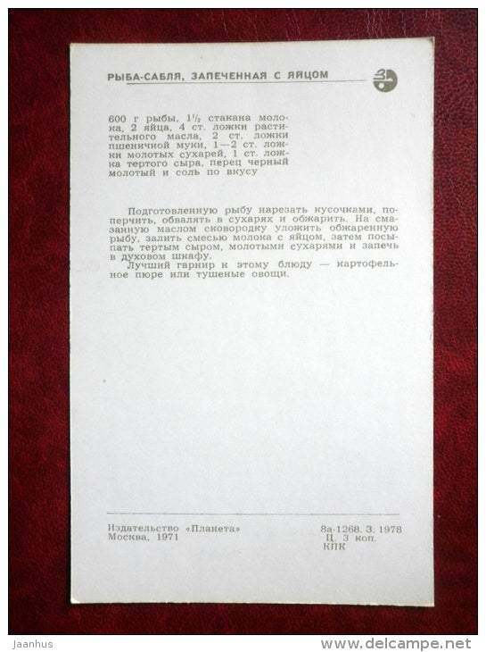 espadon cuit avec des œufs - nourriture pour poissons - recettes de cuisine - 1971 - Russie URSS - inutilisé