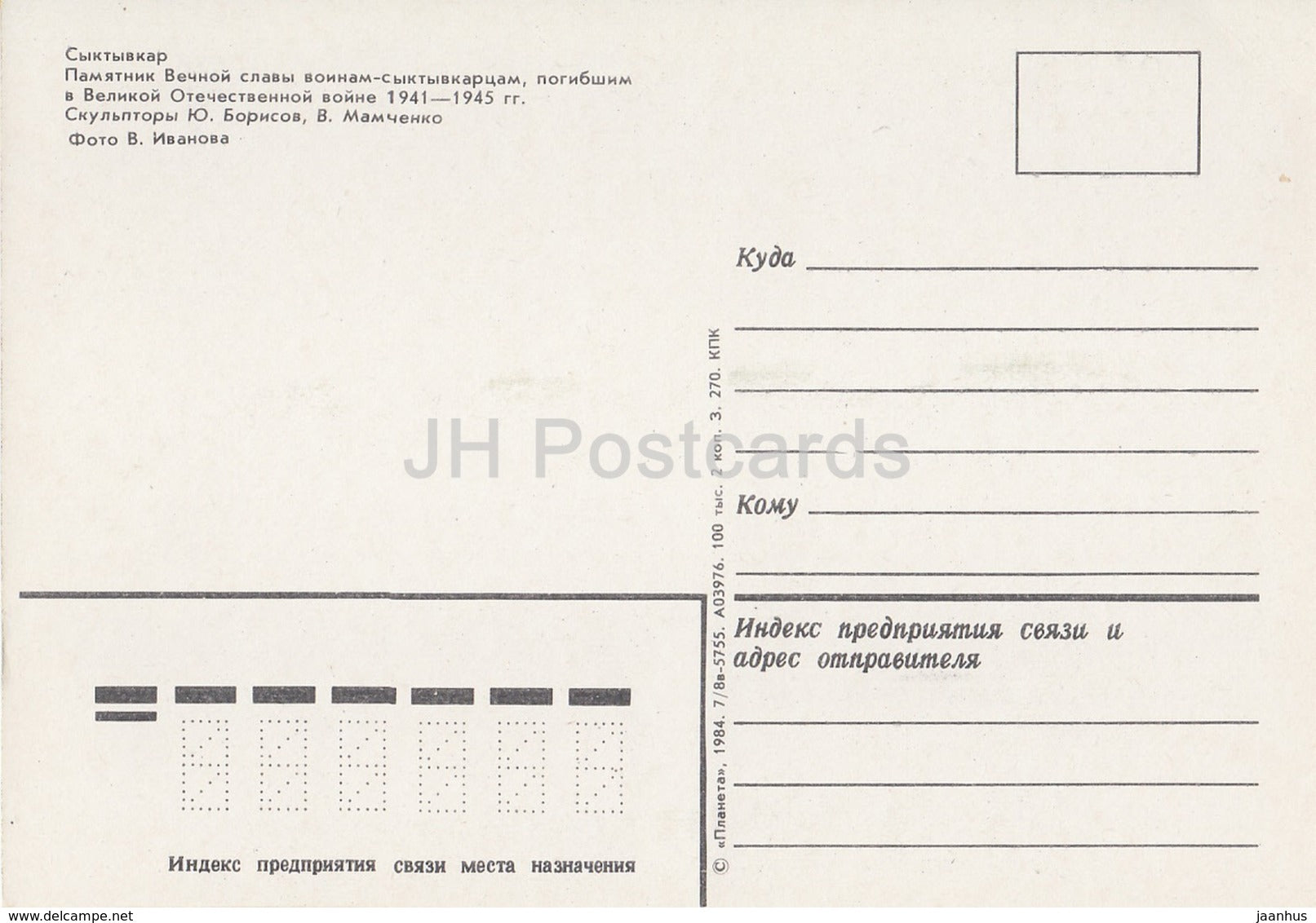 Syktyvkar - monument de la gloire éternelle aux soldats morts pendant la Seconde Guerre mondiale - République de Komi - 1984 - Russie URSS - inutilisé