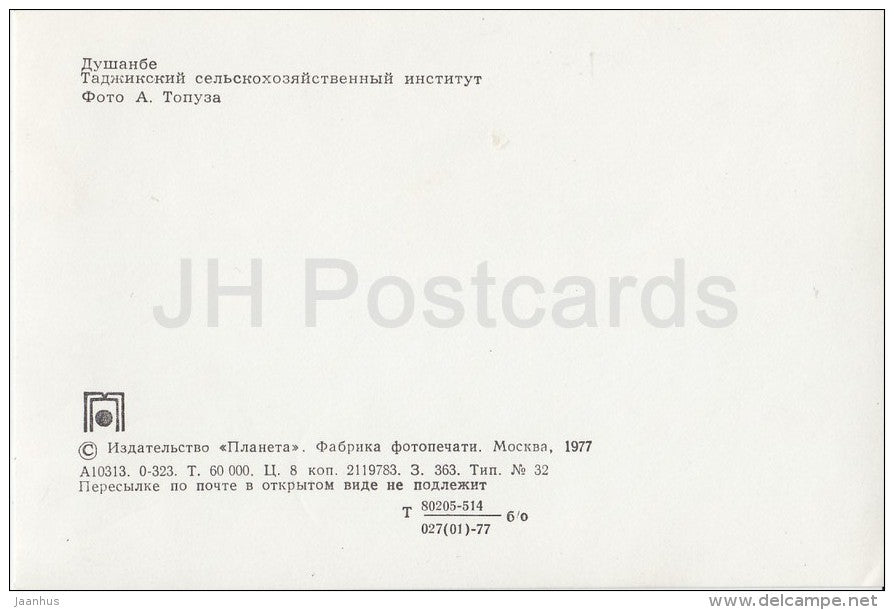 Institut agricole tadjik - Douchanbé - 1977 - Tadjikistan URSS - inutilisé