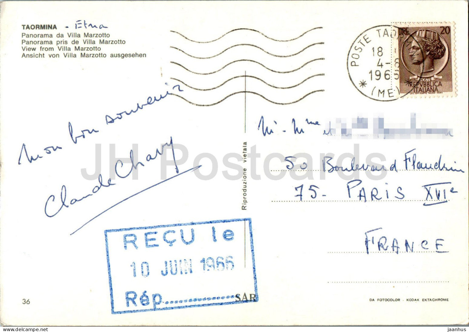 Taormina - Panorama da Villa Marzotto - Vue depuis la Villa Marzotto - 36 - 1965 - Italie - occasion
