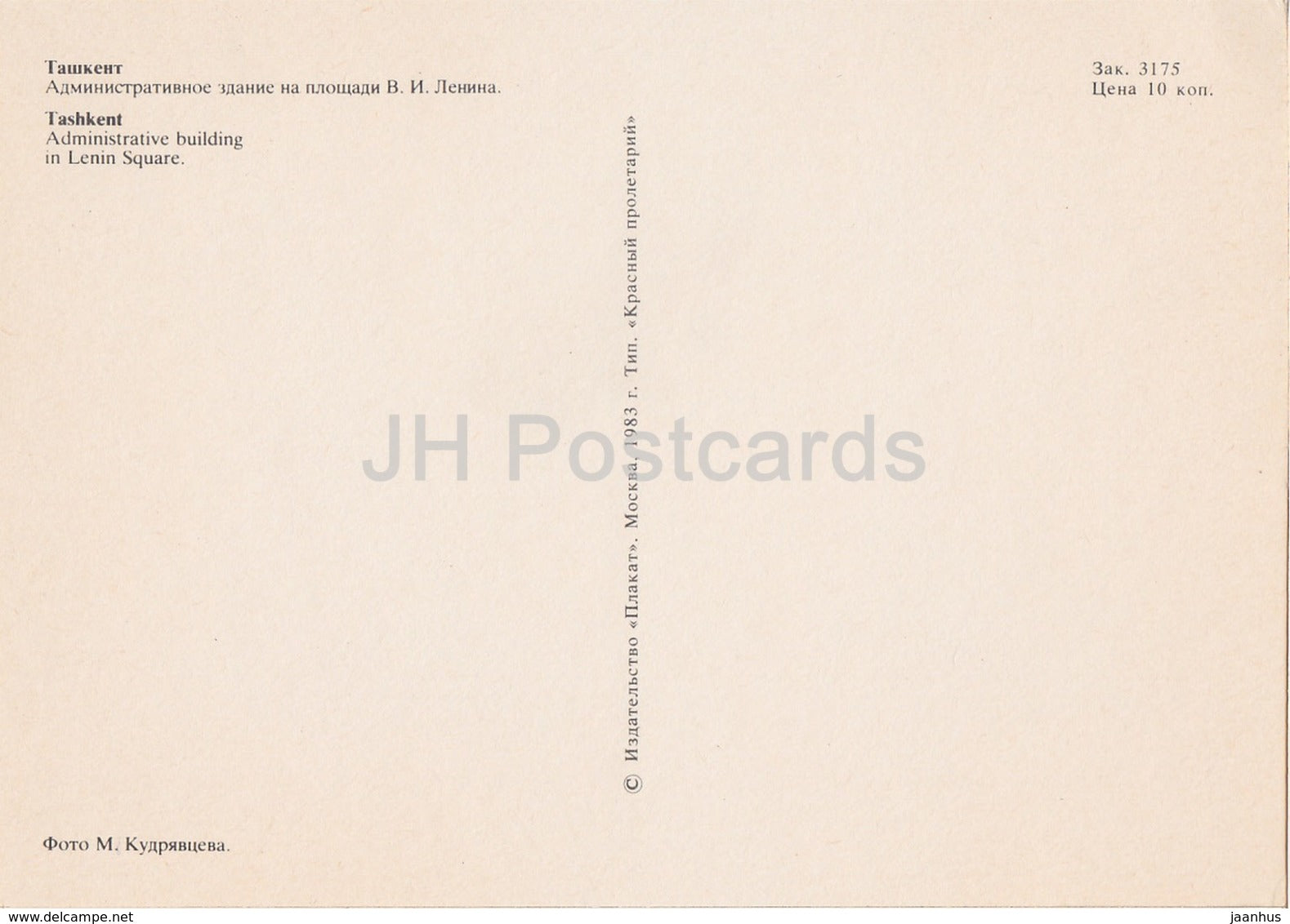 Tachkent - Bâtiment administratif de la place Lénine - 1983 - Ouzbékistan URSS - inutilisé