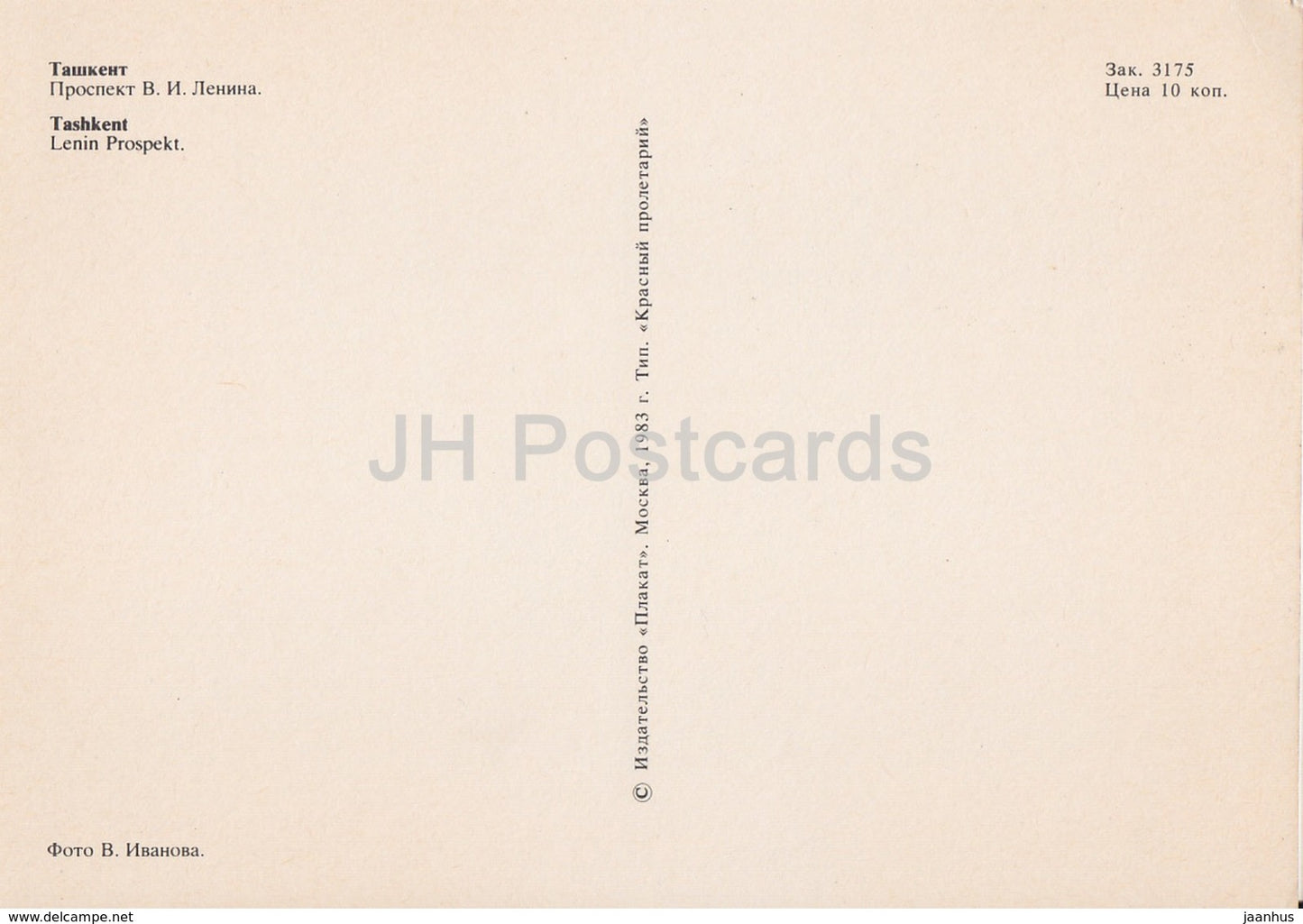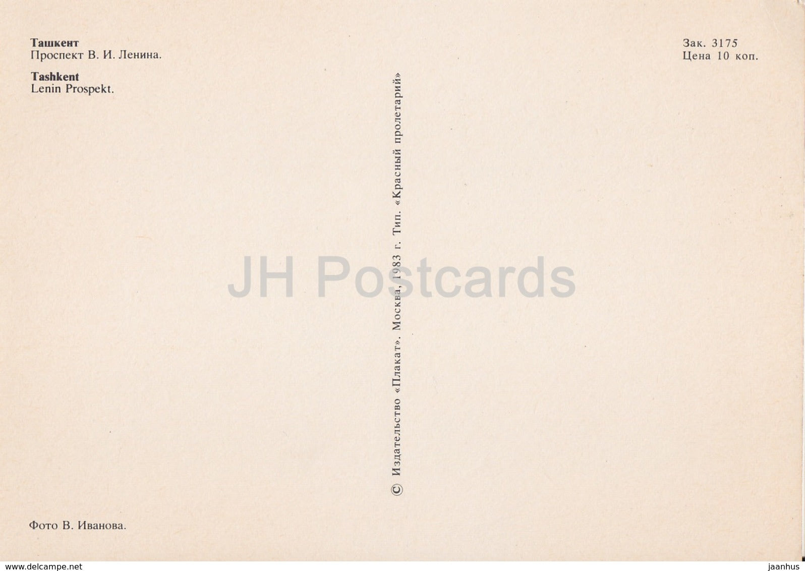 Tachkent - Perspective Lénine - voitures - 1983 - Ouzbékistan URSS - inutilisé