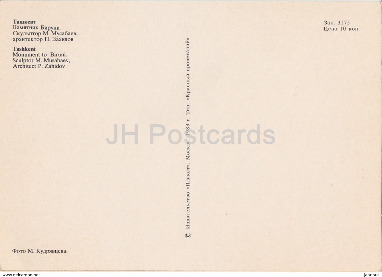 Tachkent - monument à Biruni - 1983 - Ouzbékistan URSS - inutilisé