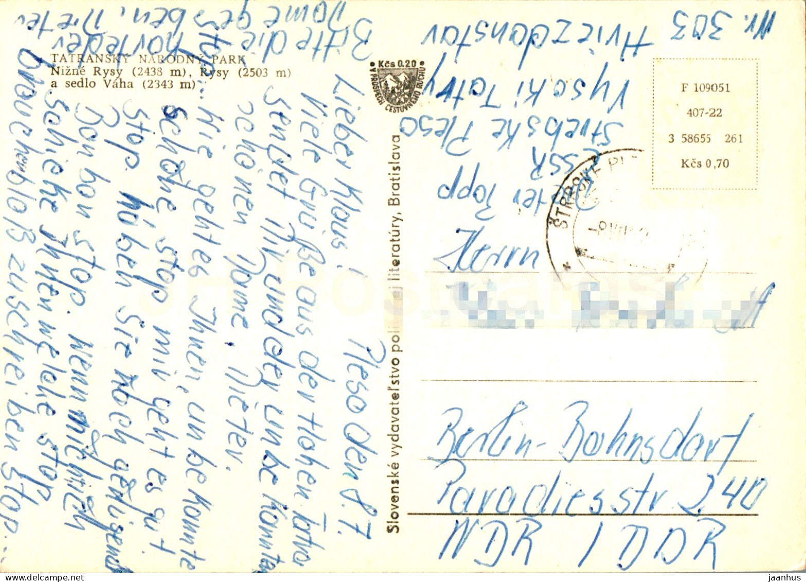 Parc Tatransky Narodny - Nizne Rysy - Rysy - Vaha - montagnes - Slovaquie - Tchécoslovaquie - utilisé