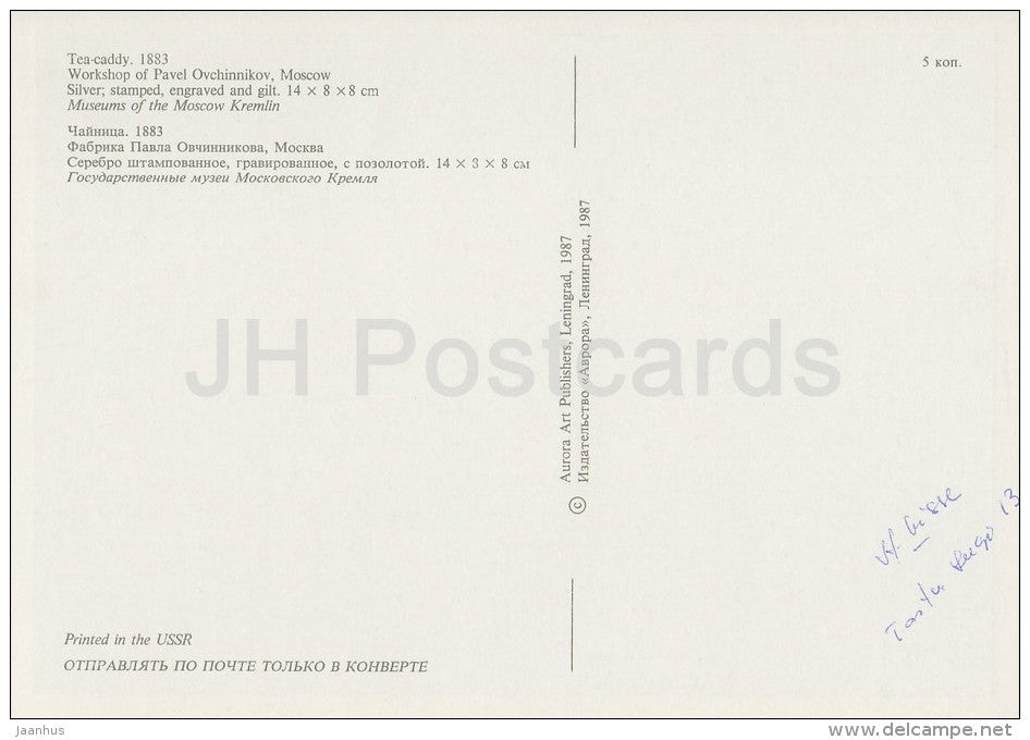 Tea-Caddy - argent - Argenterie des maîtres joailliers russes - 1987 - Russie URSS - inutilisé