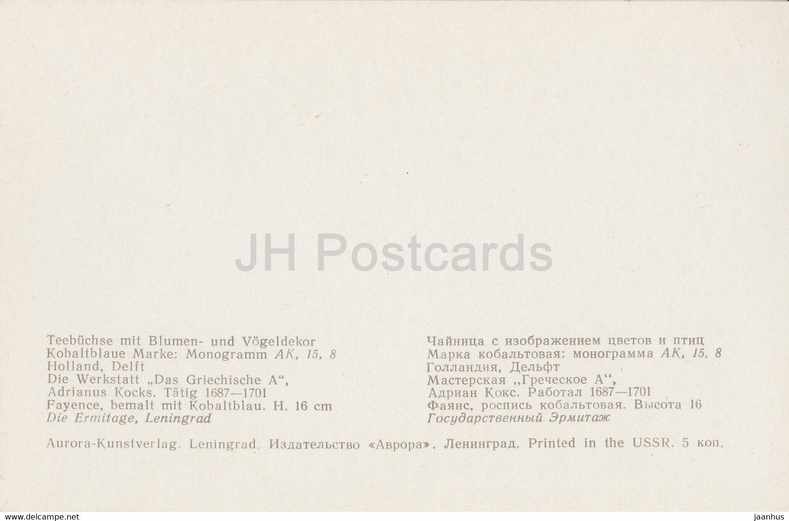 Boîte à thé avec images de fleurs et d'oiseaux par Adrianus Kocks - 1 - Faïence - Delftware - 1974 - Russie URSS - inutilisé