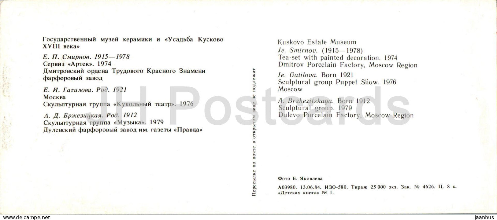 service à thé - spectacle de marionnettes - groupe sculptural porcelaine et faïence - art appliqué - art russe - 1984 - Russie URSS - inutilisé