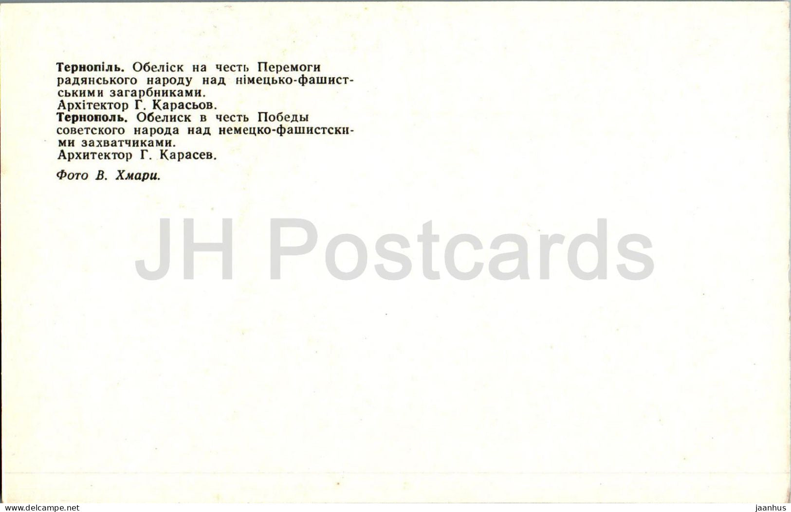 Ternopil - obélisque en l'honneur de la victoire du peuple soviétique sur les envahisseurs nazis - 1979 - Ukraine URSS - inutilisé