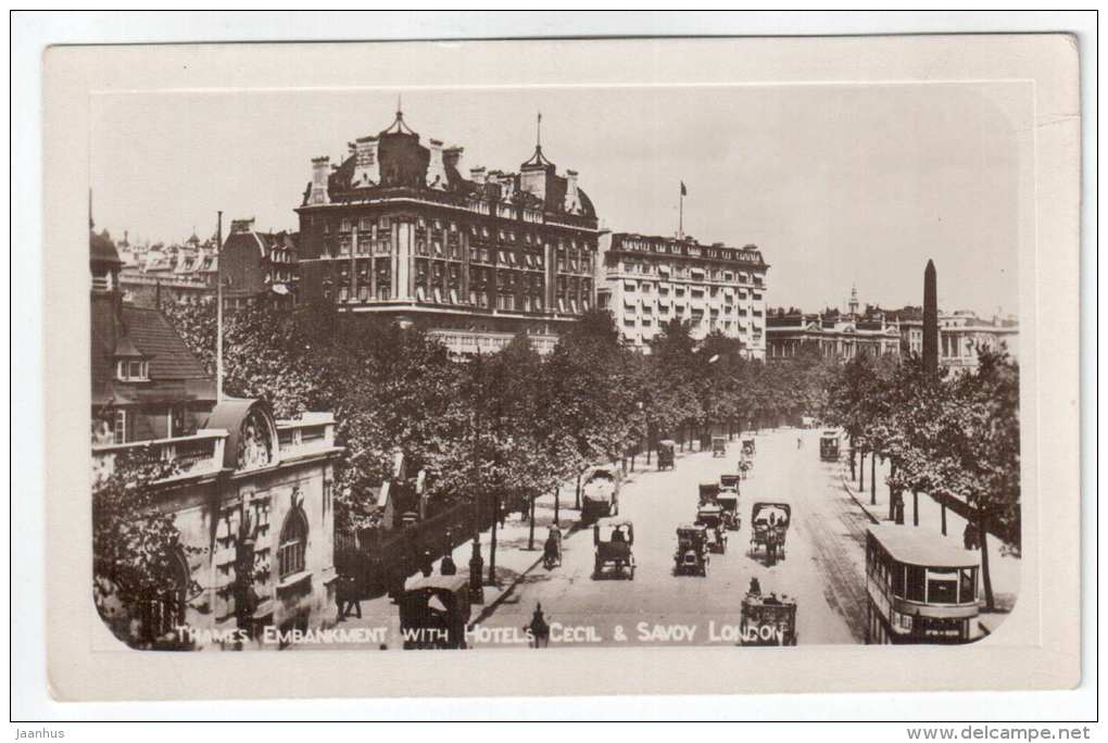 Thames Embankment avec les hôtels Cecil et Savoy - Londres - vieilles voitures - tramway - Royaume-Uni , Angleterre - inutilisé