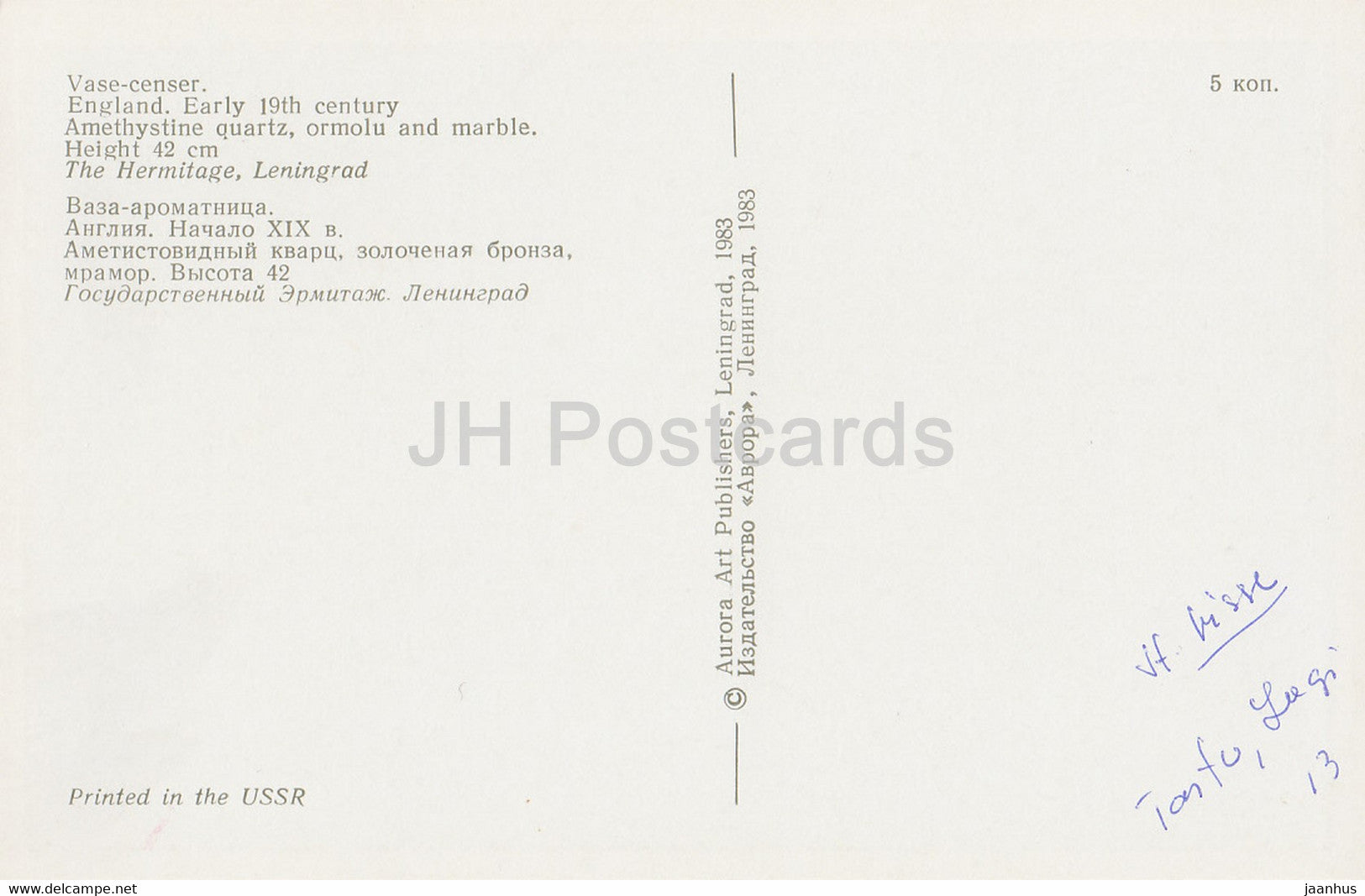 L'Ermitage, Leningrad, Art Appliqué Anglais - Vase-encensoir. Angleterre. 19ème siècle. - Russie - URSS - 1983 - d'occasion