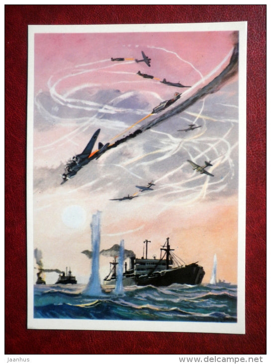 L'exploit héroïque du pilote Boriss Safonov - par P. Pavlinov - Seconde Guerre mondiale - navire de guerre - avion - 1974 - Russie URSS - inutilisé