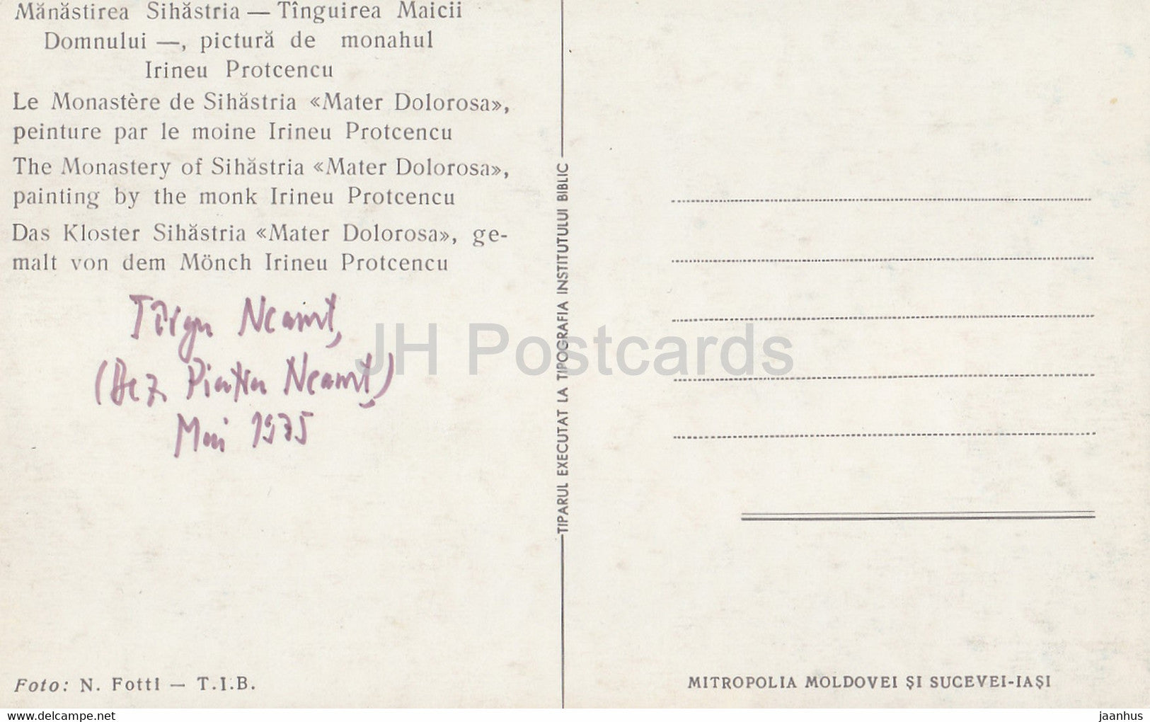 Le monastère de Sihastria - Mater Dolorosa - art - 1975 - Roumanie - utilisé