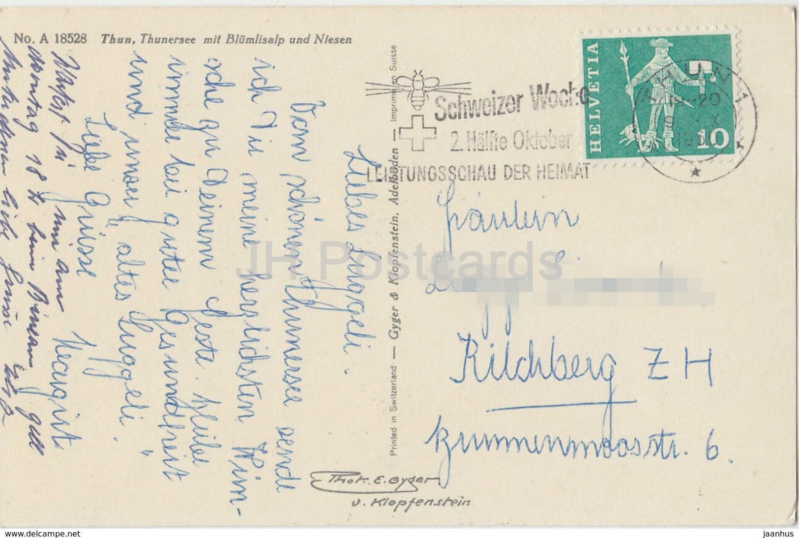 Thoune - Thunersee mit Blumlisalp und Niesen - cygne - oiseaux - 18528 - Suisse - carte postale ancienne - utilisé