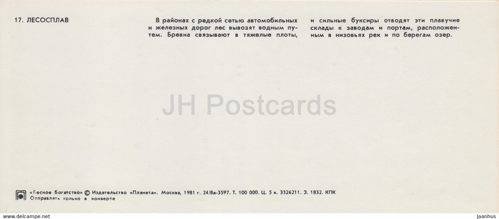 rafting en bois - navire - Richesse forestière - 1981 - Russie URSS - inutilisé