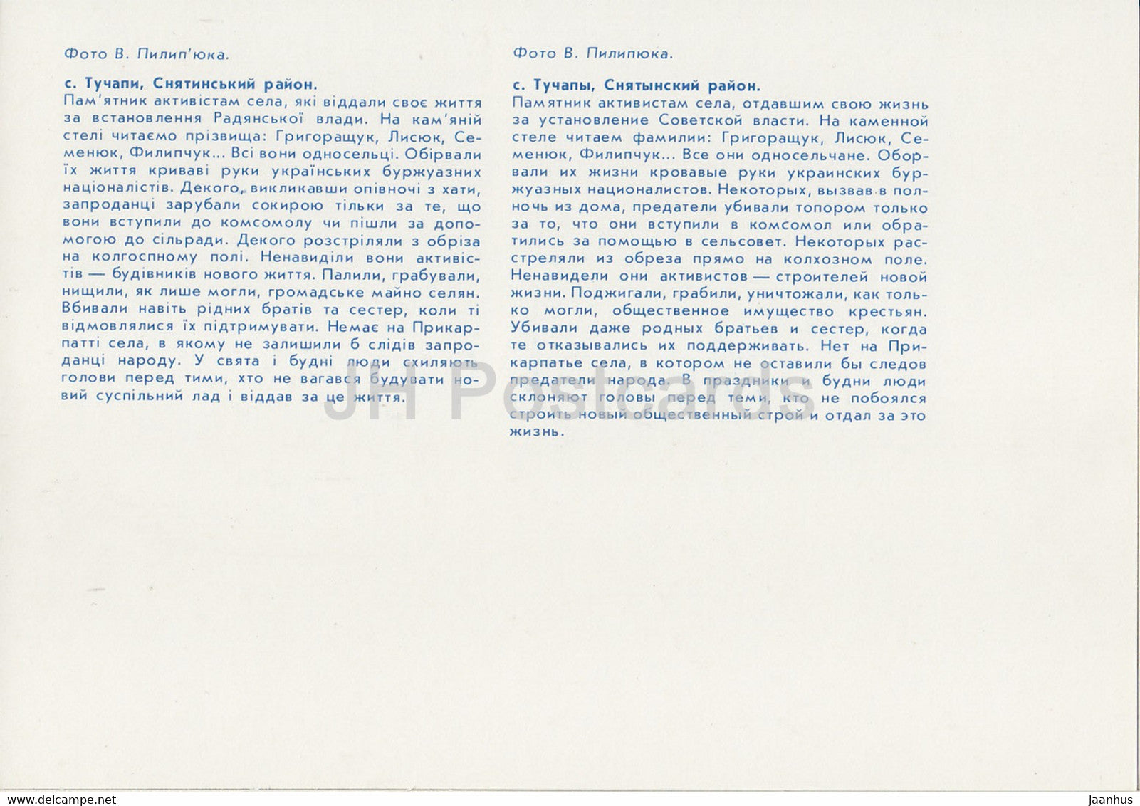 Tuchapy - monument aux militants du village - lieux mémorables de la région d'Ivano-Frankivsk - 1988 - Ukraine URSS - inutilisé