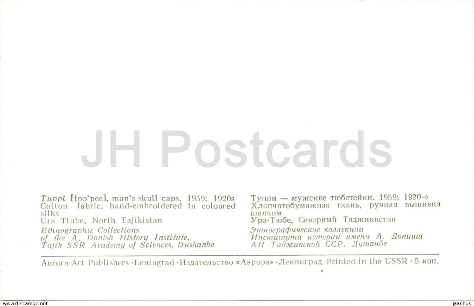 Tuppi - casquettes d'homme - art populaire - Art tadjik - Art du Tadjikistan - 1977 - Russie URSS - inutilisé