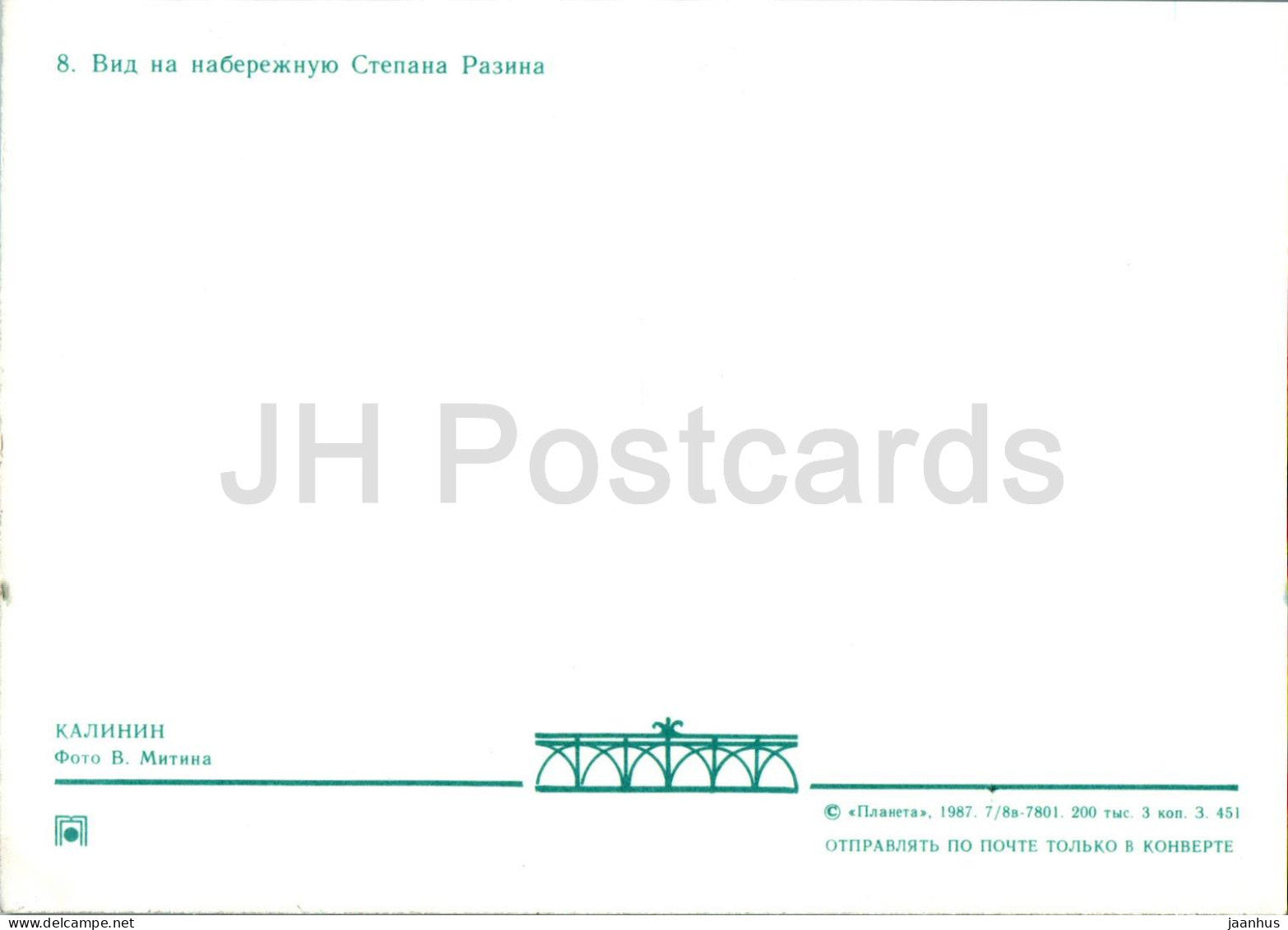 Tver - Kalinin - vue du quai Stepan Razin - 1987 - Russie URSS - inutilisé