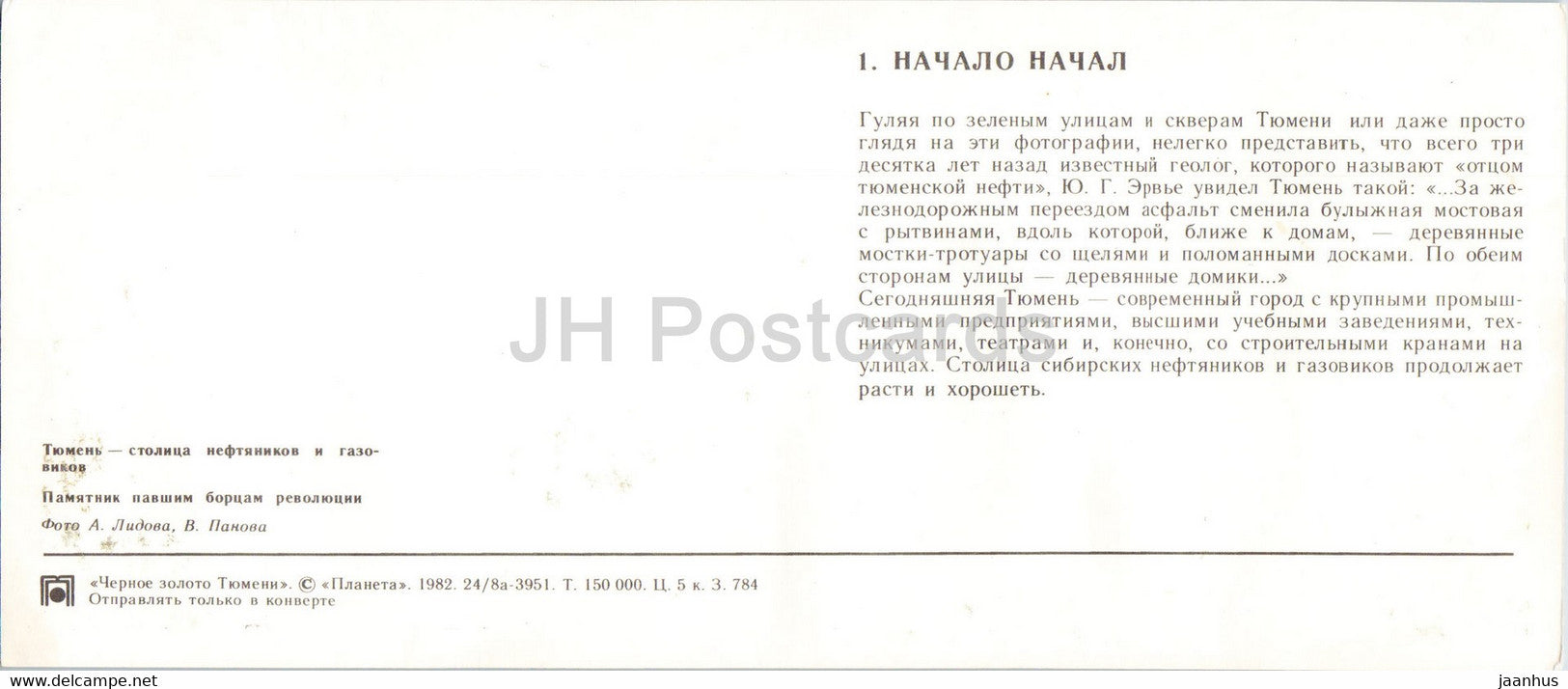 Tioumen - monument aux combattants tombés de la révolution - Industrie pétrolière - Sibérie - 1982 - Russie URSS - inutilisé