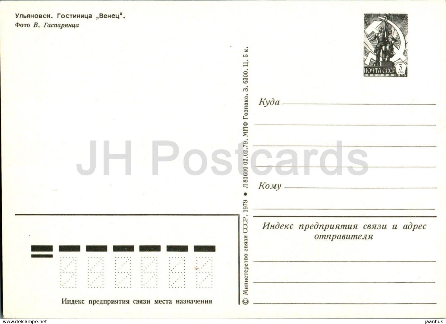 Oulianovsk - hôtel Venets - entier postal - 1979 - Russie URSS - inutilisé