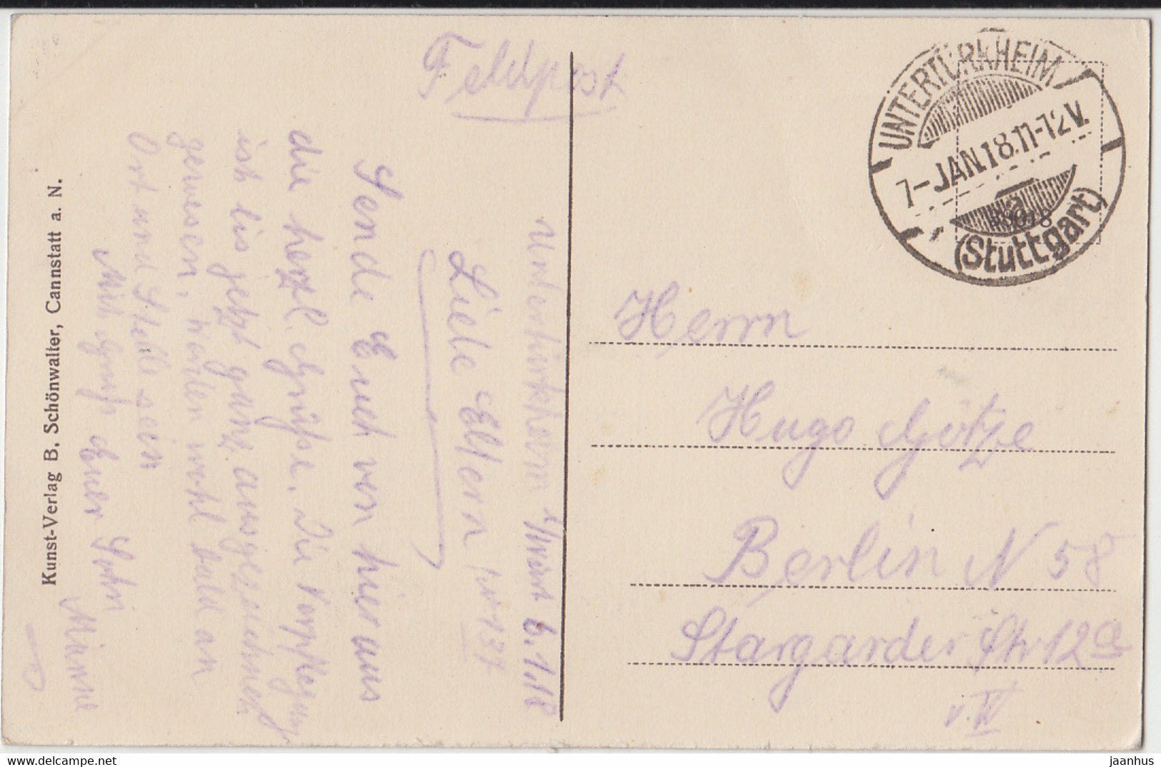 Unterturkheim - Feldpost - carte postale ancienne - 1918 - Allemagne - utilisé