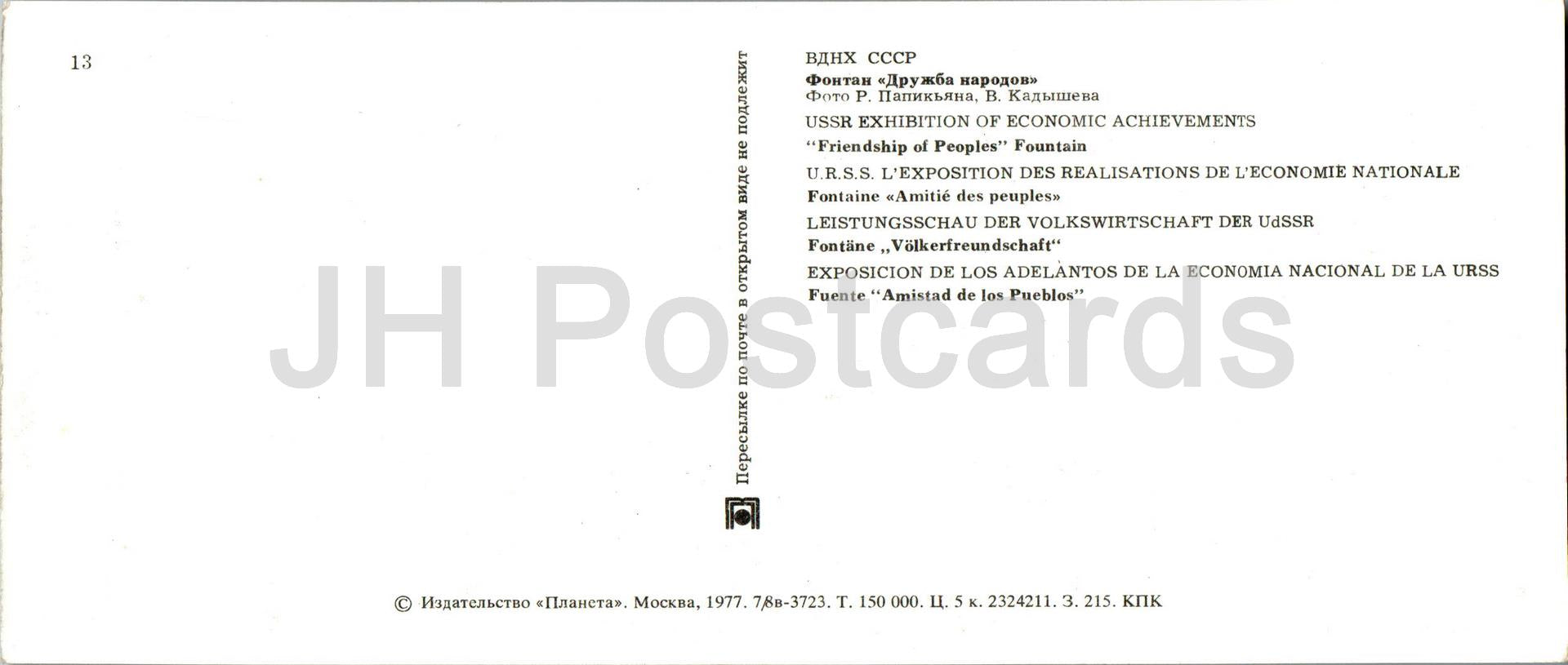 Exposition des réalisations économiques de l'URSS - Fontaine de l'amitié des peuples - 1977 - Russie URSS - inutilisée