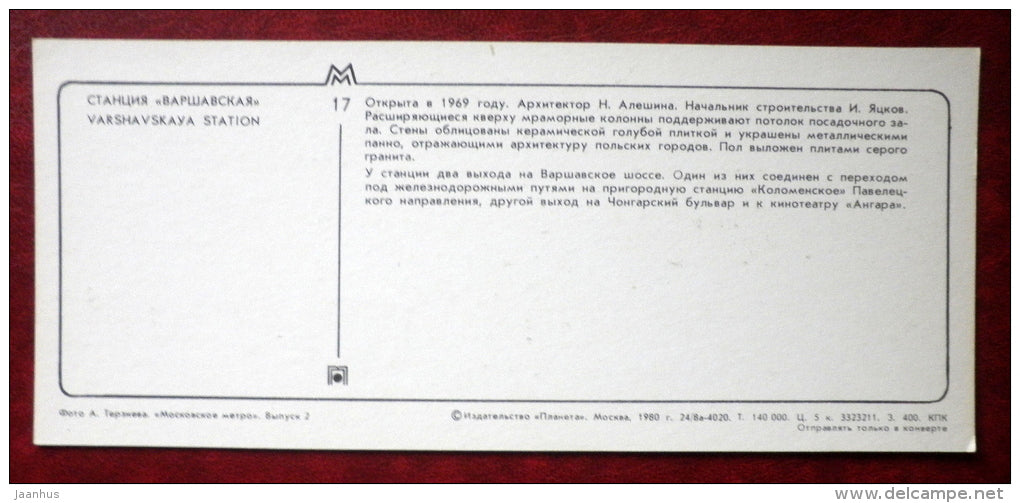 Station Varshavskaya - Métro de Moscou - métro - Moscou - 1980 - Russie URSS - inutilisé