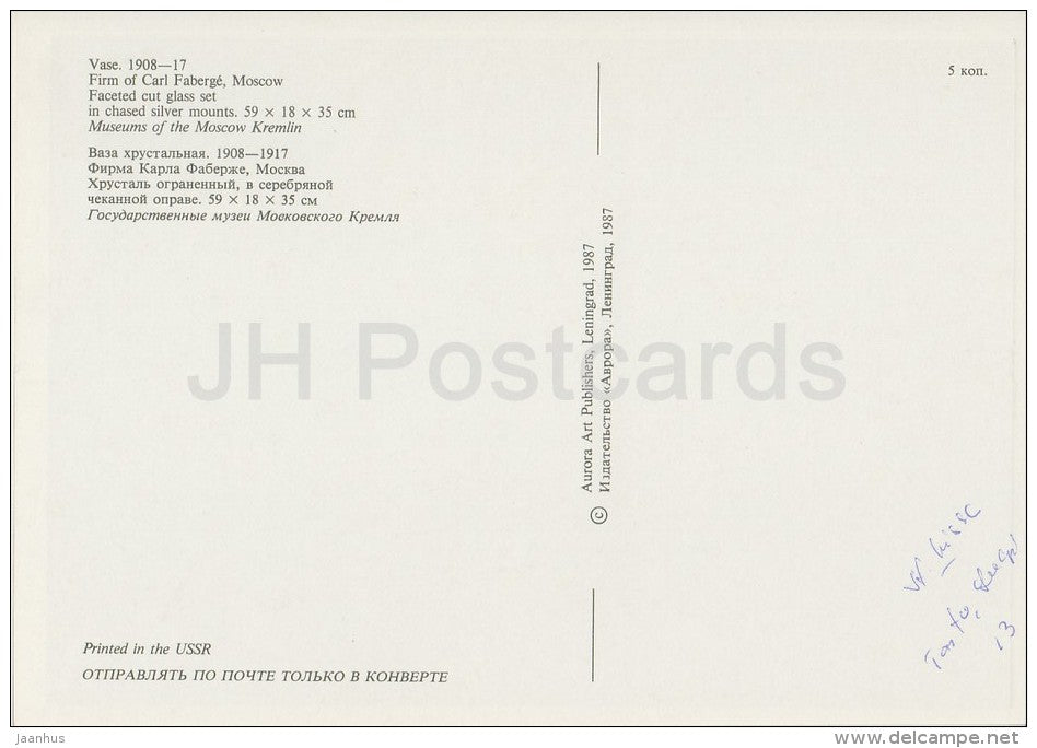 Vase - Fabergé - argent - Argenterie des maîtres joailliers russes - 1987 - Russie URSS - inutilisé