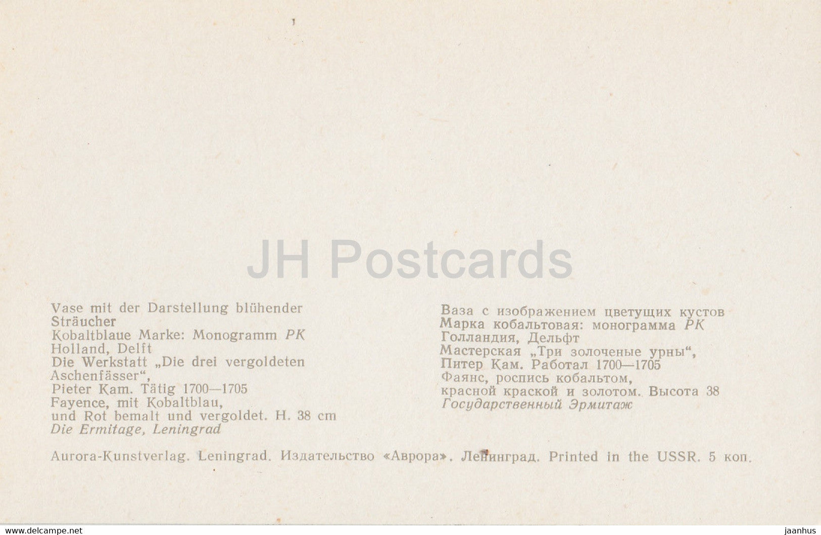 Vase avec les arbustes à fleurs de Pieter Kam - 1 - Faïence - Delftware - 1974 - Russie URSS - inutilisé