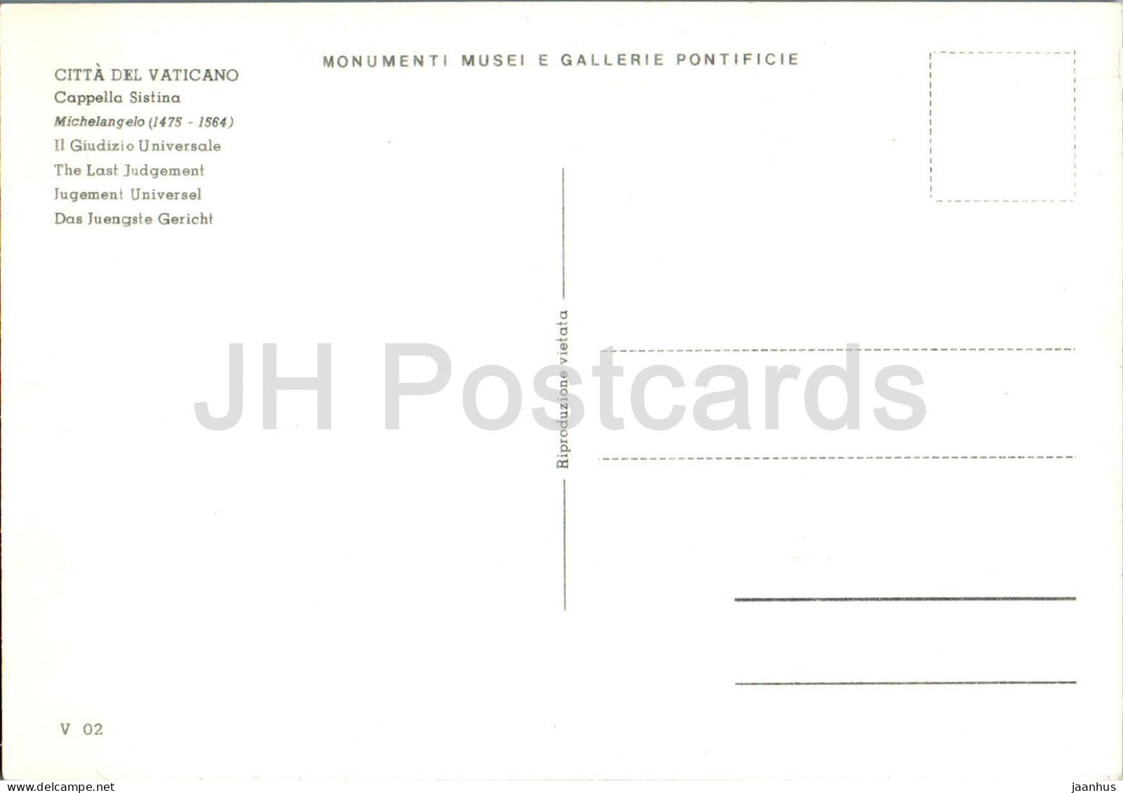 Vatican - Vaticano - Cappella Sistina - Michel-Ange - Il Giudizio Universale - Le Jugement dernier - Vatican - inutilisé