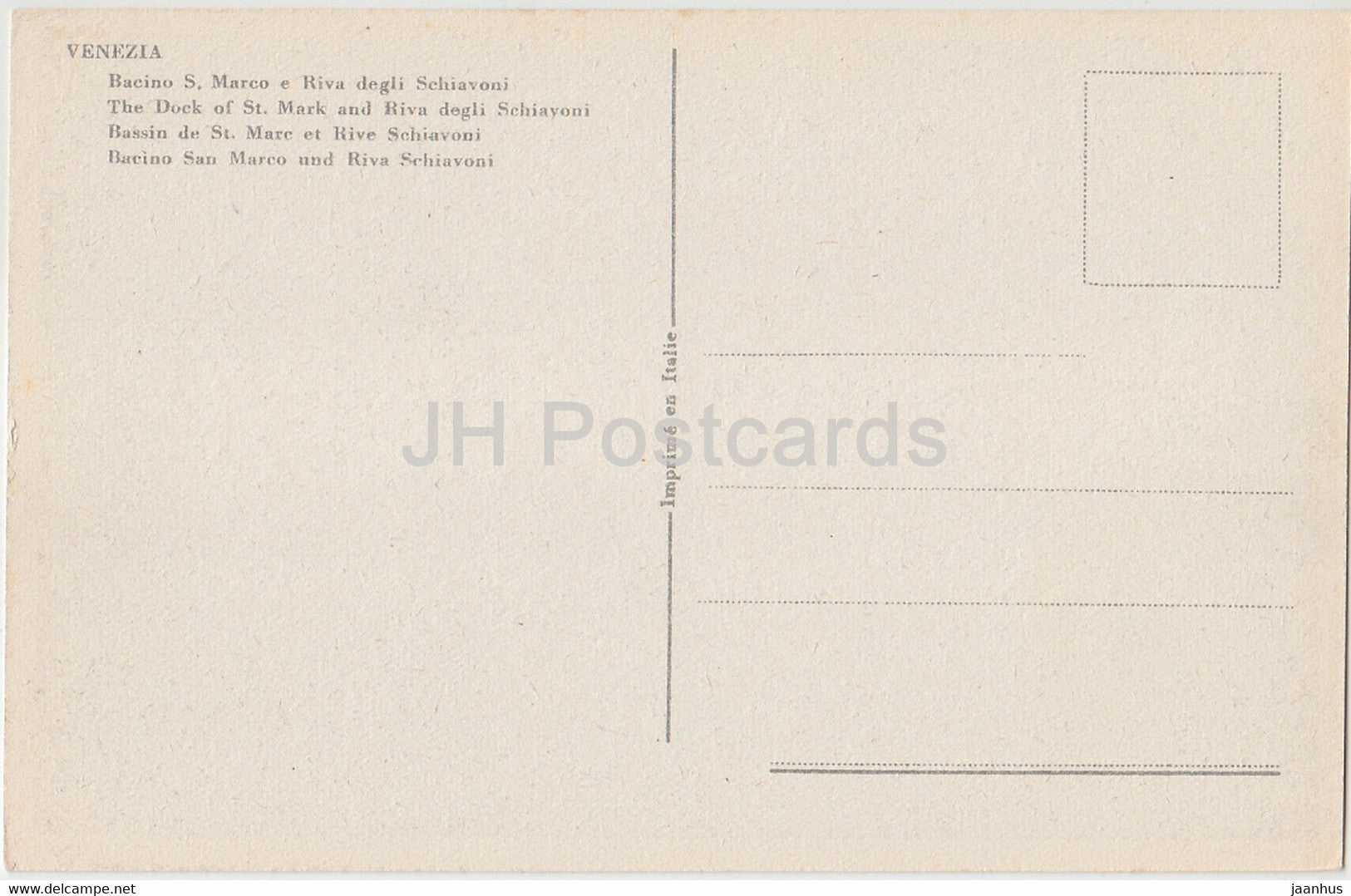Venezia - Vendig - Venise - Le Dock de Saint-Marc et Riva degli Schiayoni - navire - carte postale ancienne - Italie - inutilisé