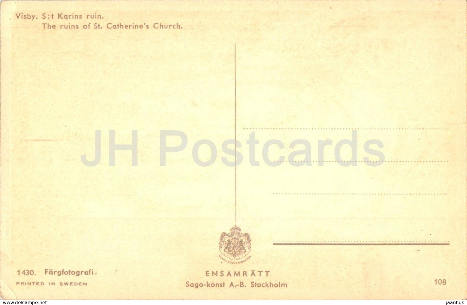 Visby - Ruine de St Karins - Les ruines de l'église Sainte-Catherine - 1430 - carte postale ancienne - Suède - inutilisée