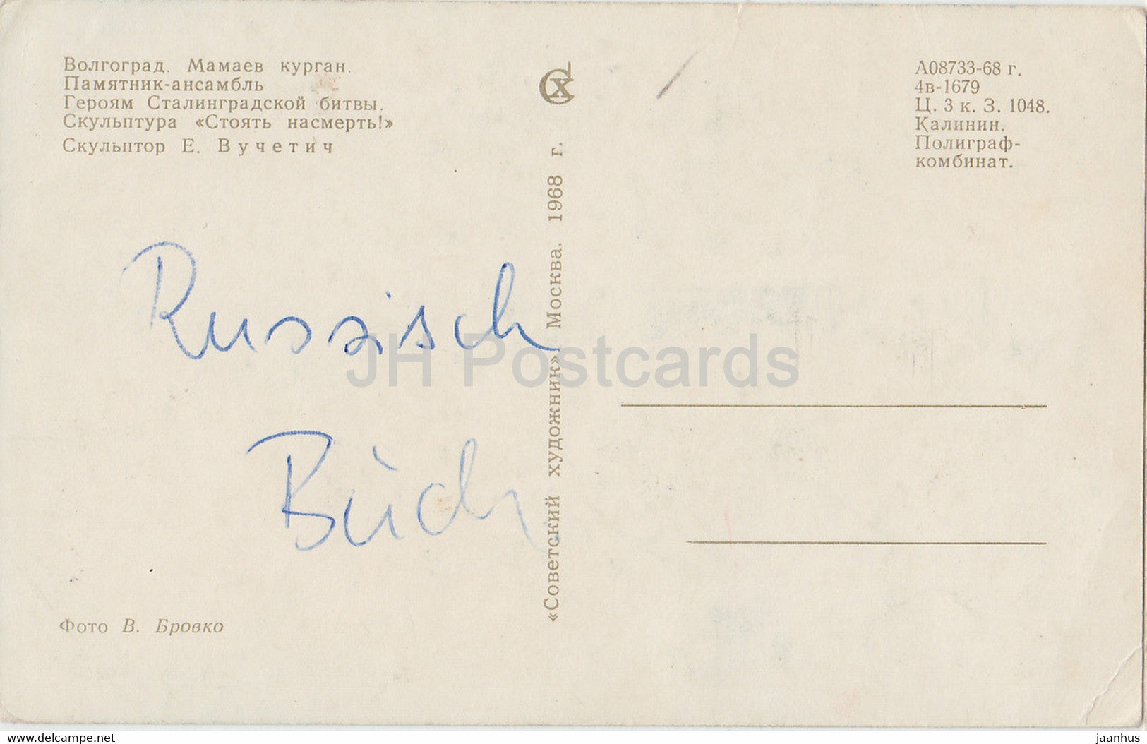 Volgograd - Mamayev Kurgan - Monument de la bataille de Stalingrad - Sculpture Stand to Death - 1968 - Russie URSS - utilisé