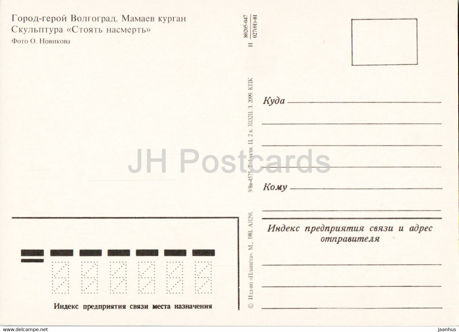 Volgograd - Mamayev Kurgan - Sculpture Stand to Death - 1 - 1981 - Russie URSS - inutilisé