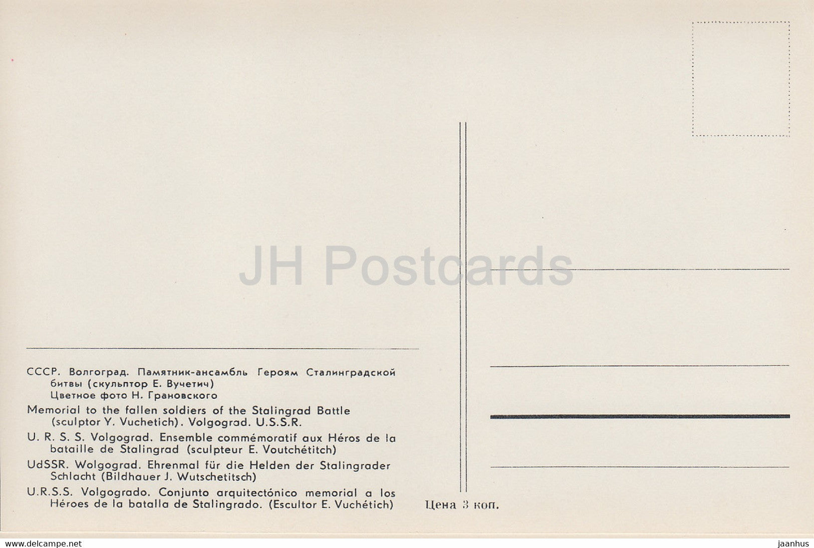 Volgograd - Mémorial aux soldats tombés au combat de la bataille de Stalingrad - Russie URSS - inutilisé