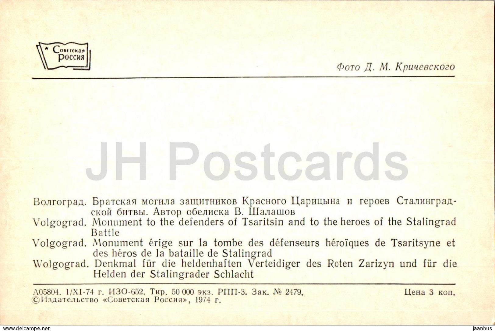Volgograd - Monument aux défenseurs de Tsaritsine et aux héros de la bataille de Stalingrad - 1974 - Russie URSS - inutilisé
