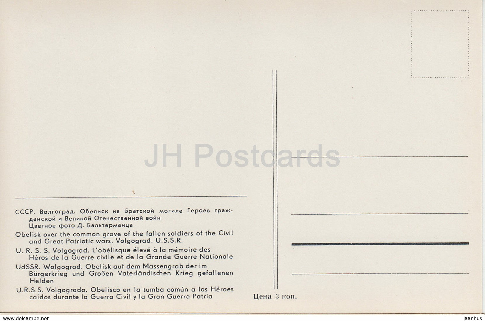 Volgograd - Obélisque sur la tombe commune des soldats tombés pendant la guerre civile - Russie URSS - inutilisé