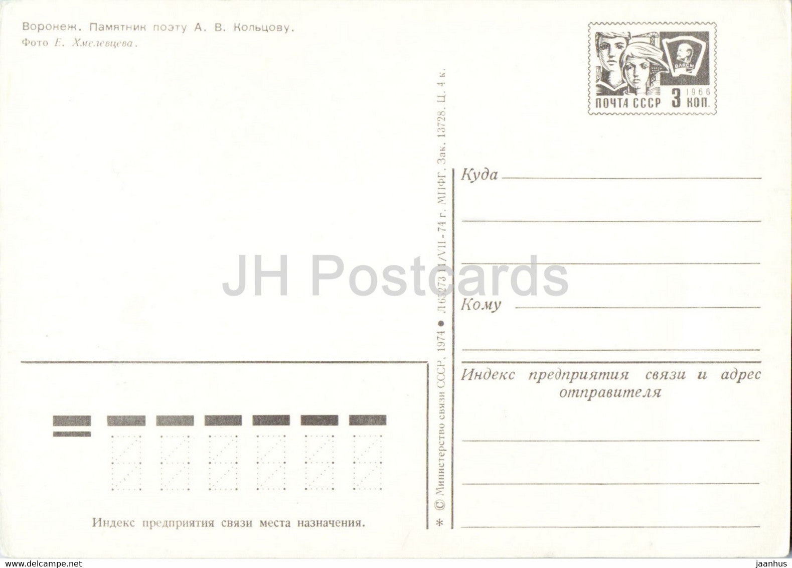 Voronej - monument au poète russe Koltsov - entier postal - 1974 - Russie URSS - inutilisé