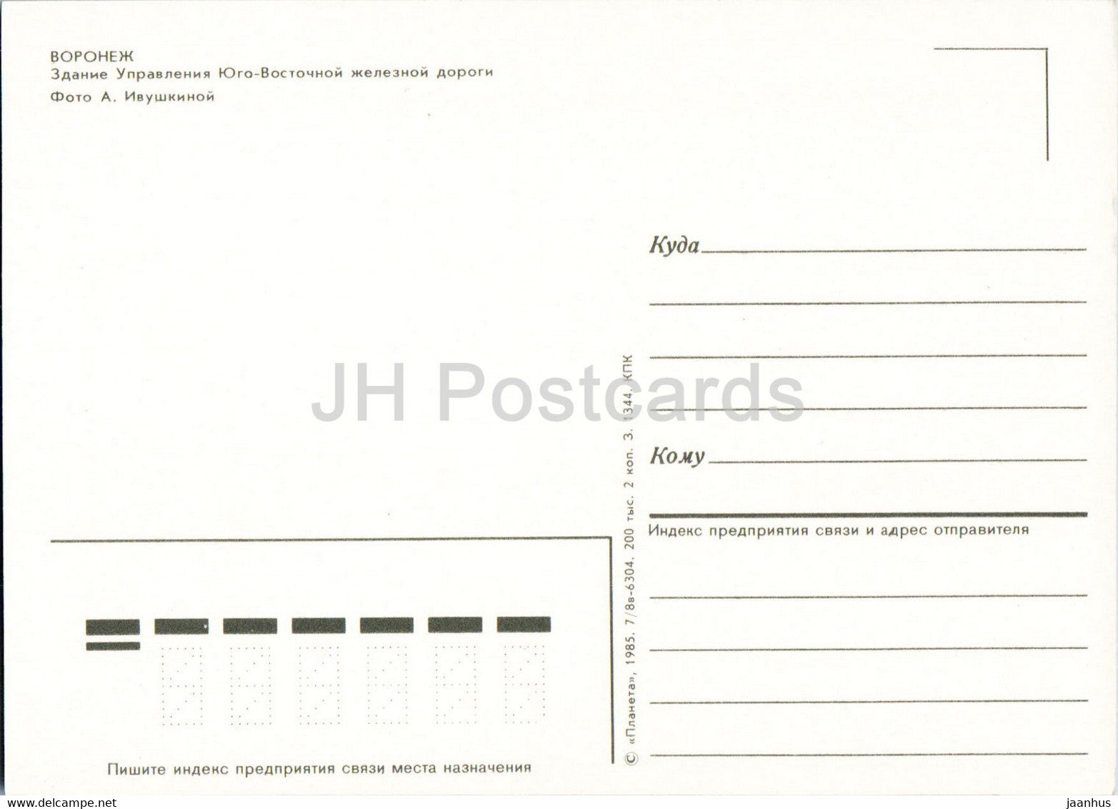 Voronej - Bâtiment de l'administration ferroviaire du sud-est - voiture Zhiguli - 1985 - Russie URSS - inutilisée