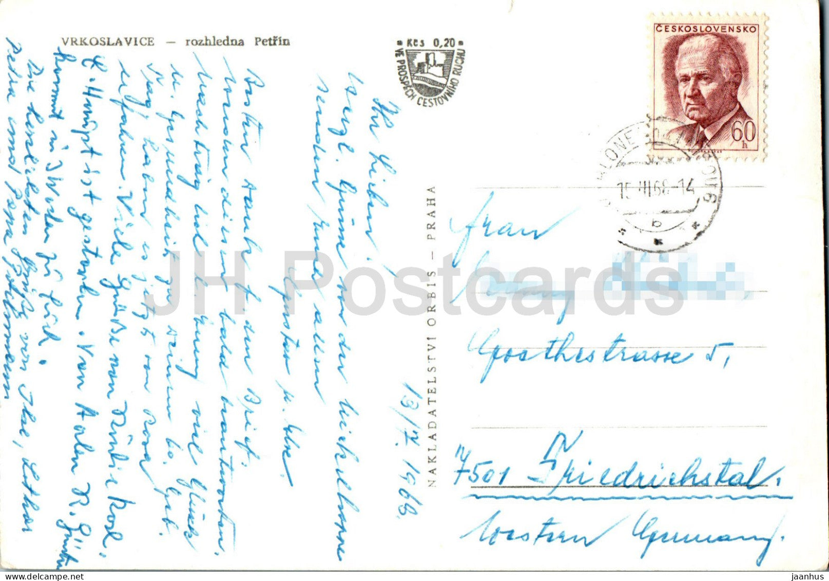 Vrkoslavice - rozhledna Petrin - Tour d'observation de Petrin - 1968 - République tchèque - Tchécoslovaquie - d'occasion