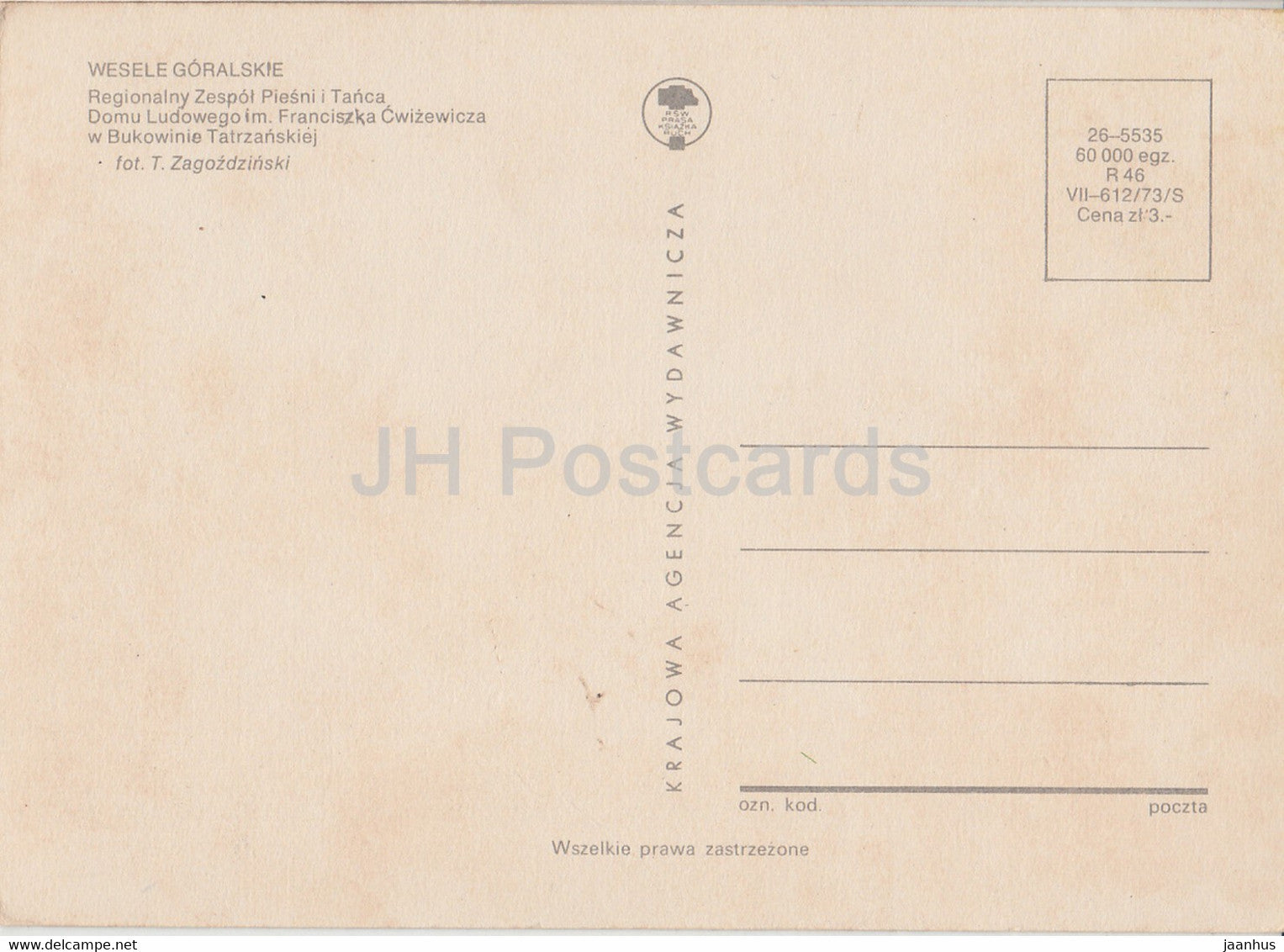 Wesele Goralskie - Mariage Highlander - Ensemble régional de chant et de danse - Costumes folkloriques polonais - Pologne - inutilisé