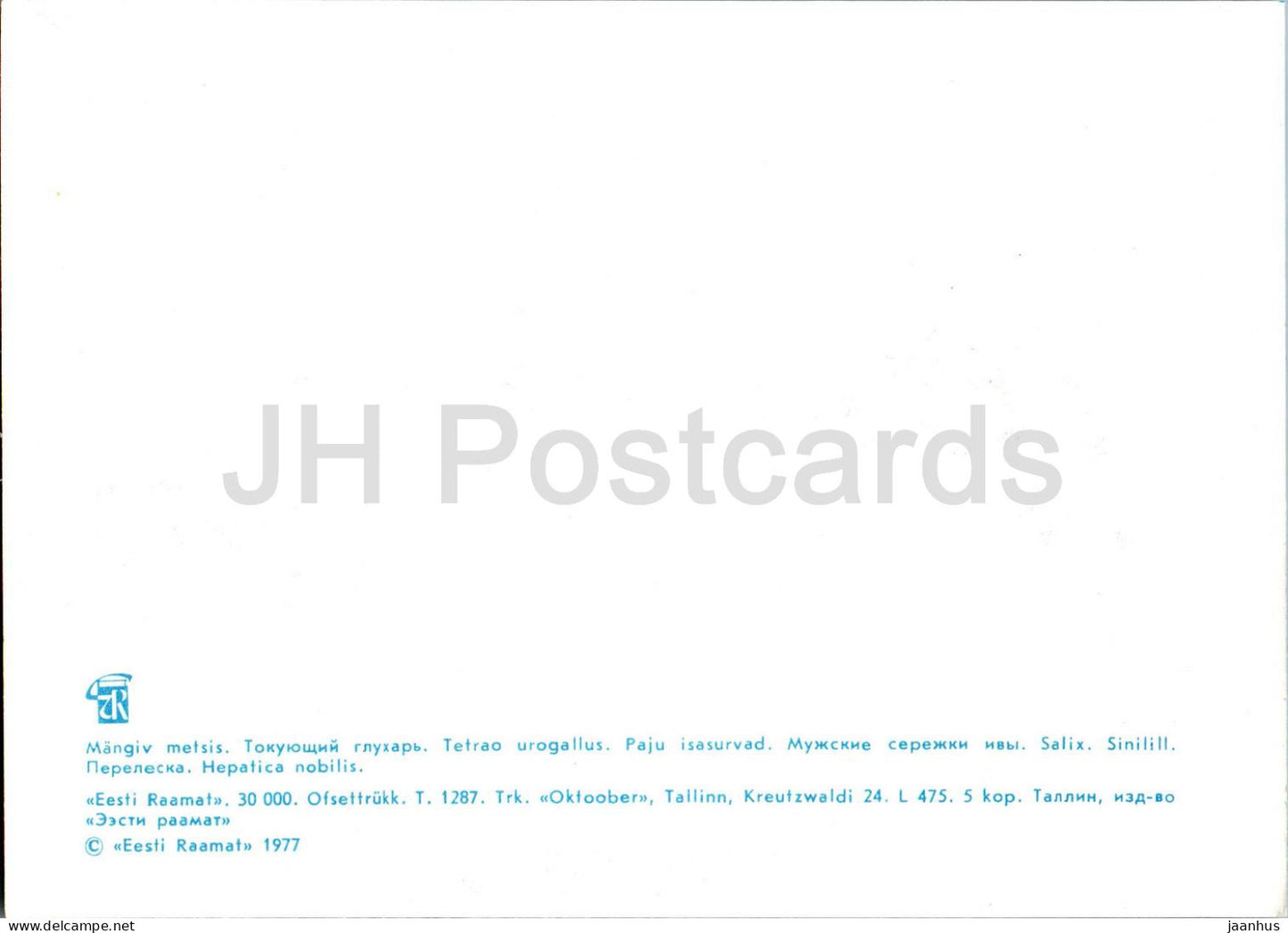 Grand tétras occidental - Tetrao urogallus - Hepatica nobilis - oiseaux - plantes - 1977 - Estonie URSS - inutilisé