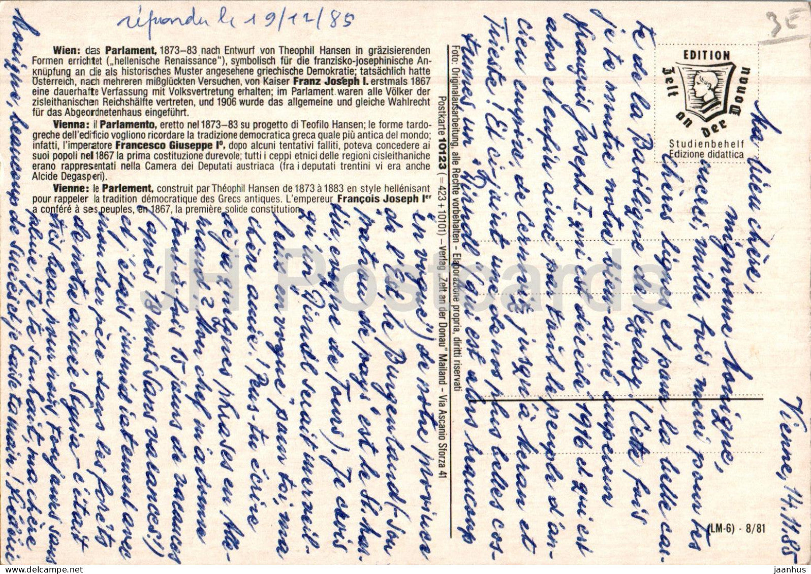 Wien - Vienne - Das Parlament - Franz Joseph I - Parlement - 8/81 - 1985 - Autriche - utilisé