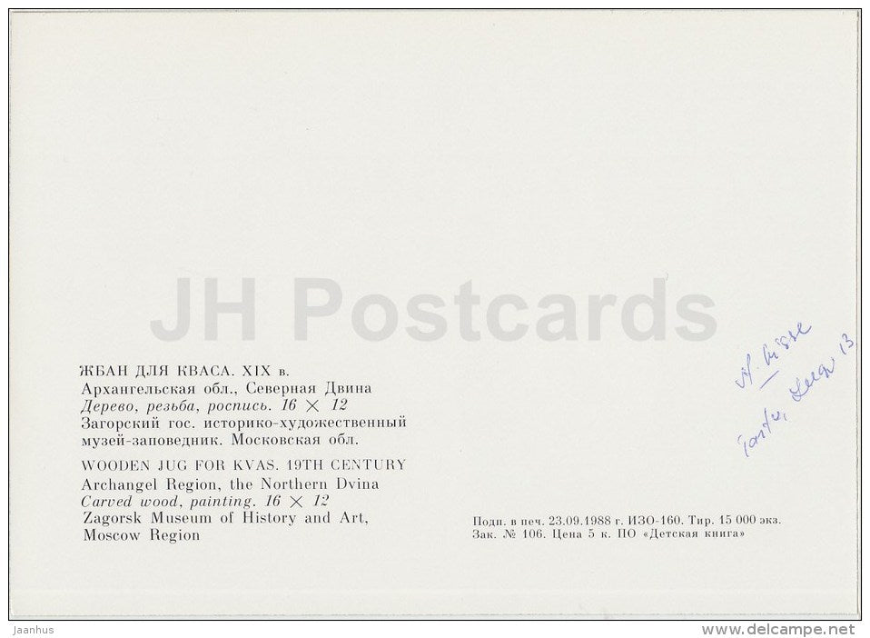 Pichet en bois pour Kvas, région d’Archangelsk - art appliqué - Art populaire russe - 1988 - Russie URSS - inutilisé