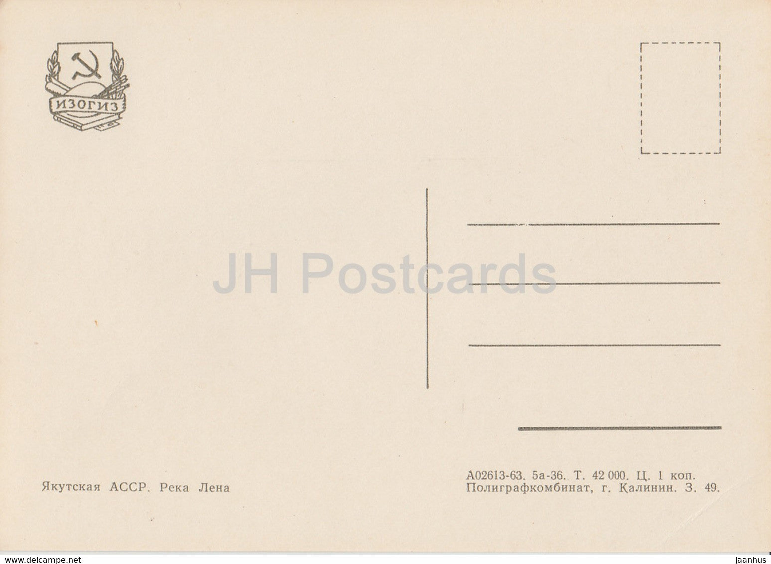 Yakoutie - République de Sakha - Rivière Léna - 1963 - Russie URSS - inutilisé